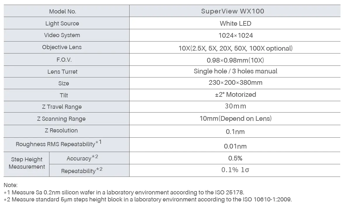 SuperView WX100 – 3D Optical Surface Profilometer