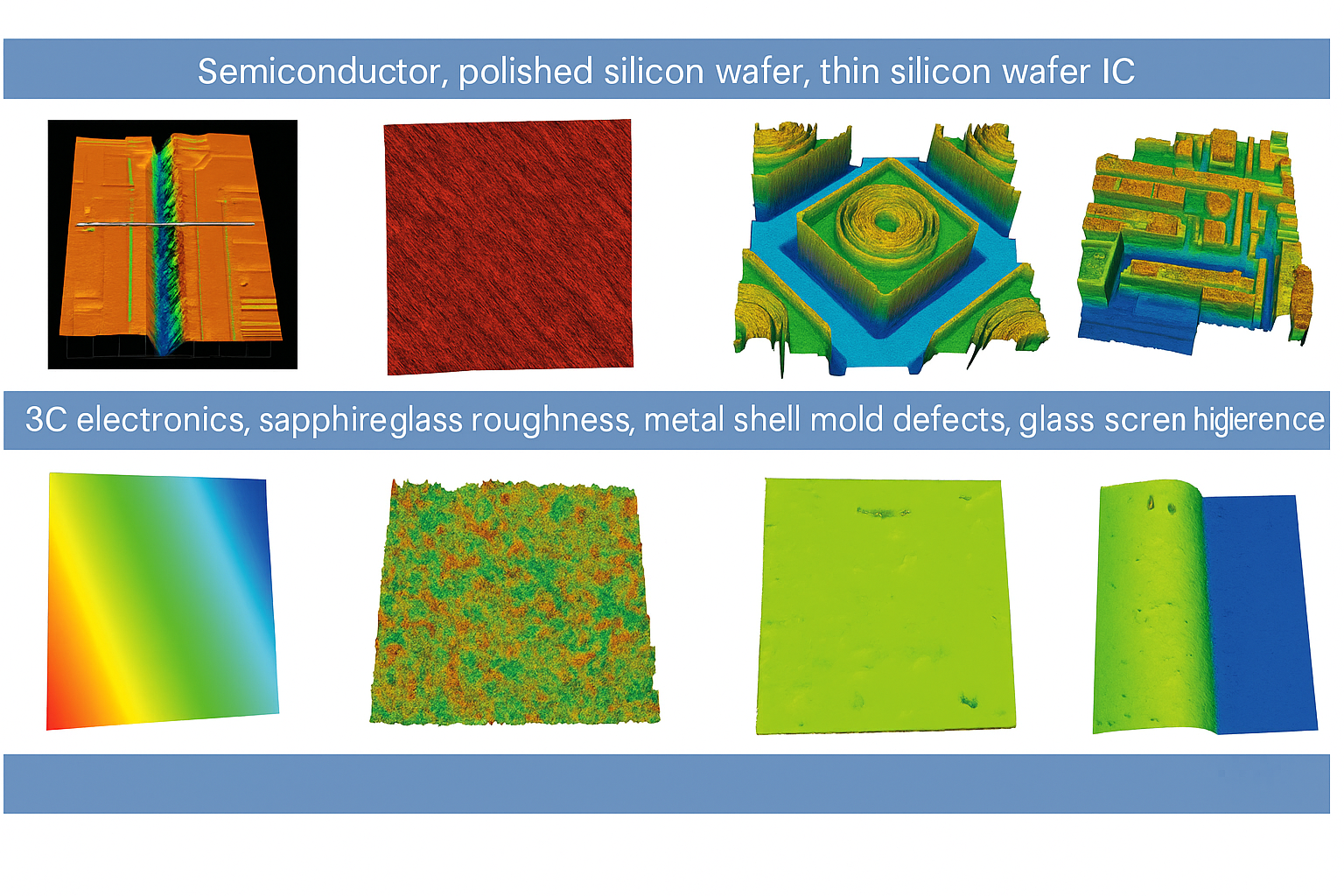 Measurement and analysis for various products, components and materials`surface form and profile characteristics, such as flatness, roughness, waviness, appearance, surface defect, abrasion, corrosion, gap,hole, stage, curvature, deformation, etc.