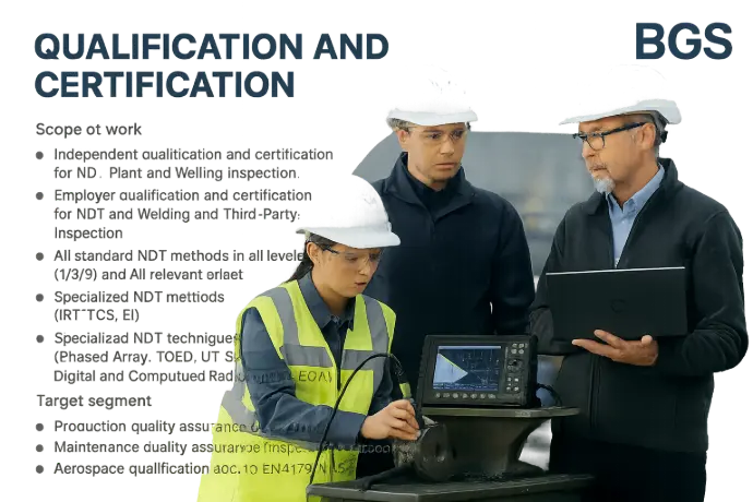 either by implementing the full process including equipment directly at the customer’s facility, or by outsourcing the customer’s NDT processes to a specialized provider.